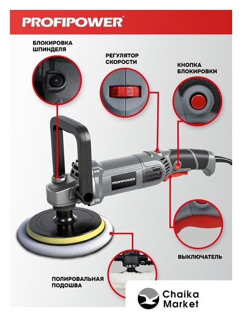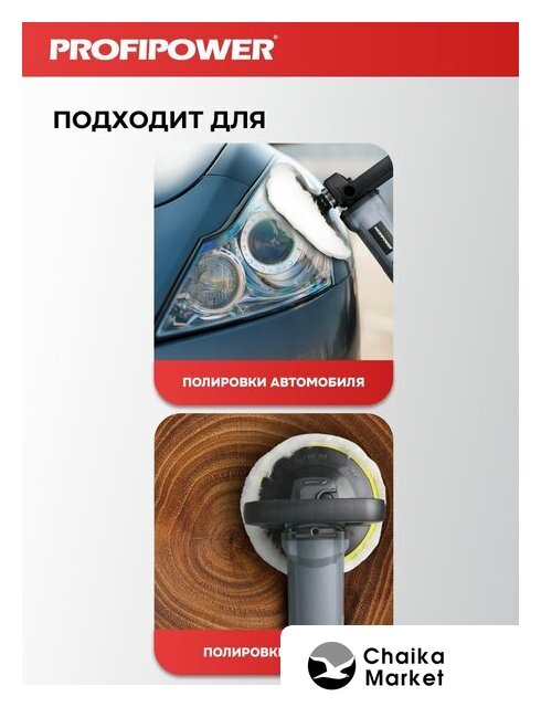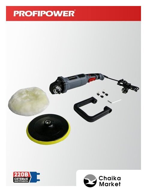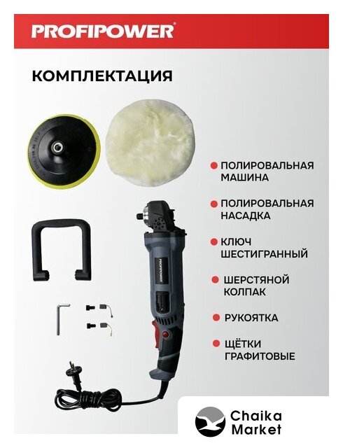 | Комплект поставки | - Полировальная насадка;- Ключ шестигранный;- Шерстяной колпак;- Рукоятка;- Графитные щетки. |