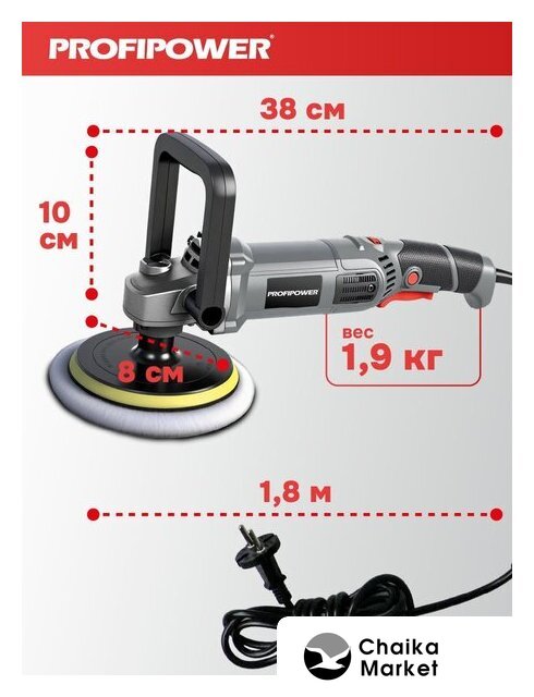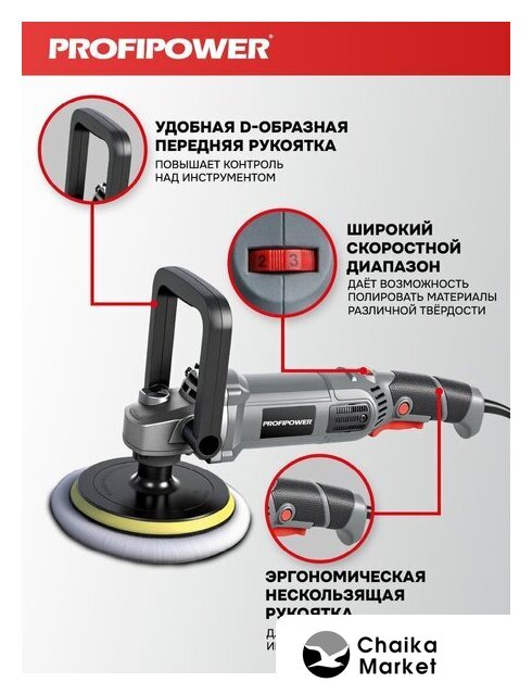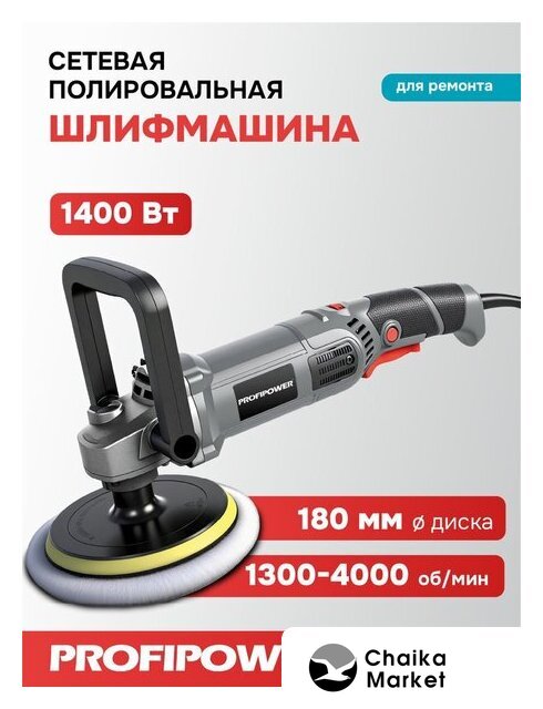 полировальная шлифмашина, диаметр шлифкруга: 180 мм, 1300 Вт, 400–3000 об/мин холостого хода, 3.1 кг