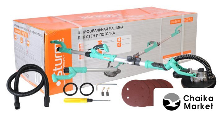 Комплект поставки | - Шлифовальная машина- Гибкий шланг- Шлифовальная бумага (6шт)- Шестигранный ключ- Двусторонняя отвертка- Уплотнительное кольцо- Сумка- Дополнительные угольные щетки (комплект, 2шт) |