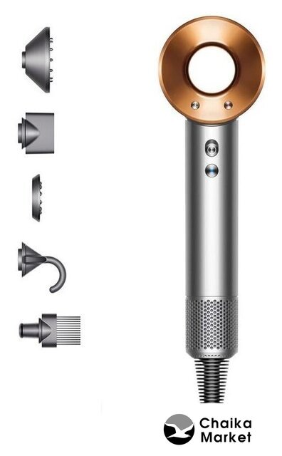 1600 Вт, EC (BLDC) мотор, ионизация, термодатчик, независимая регулировка температуры, шнур 2.8 м, медный/серебристый