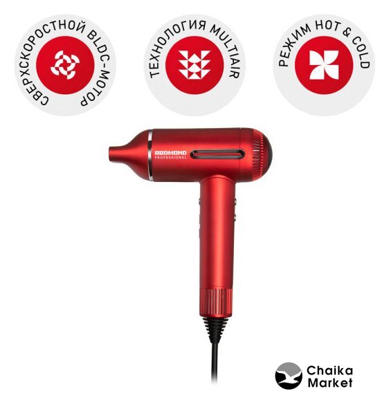 1600 Вт, EC (BLDC) мотор, ионизация, независимая регулировка температуры, шнур 3 м, черный