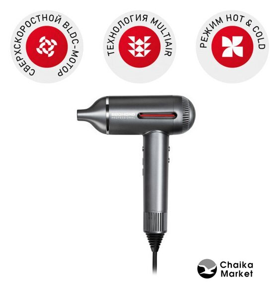 1600 Вт, EC (BLDC) мотор, ионизация, независимая регулировка температуры, шнур 3 м, черный