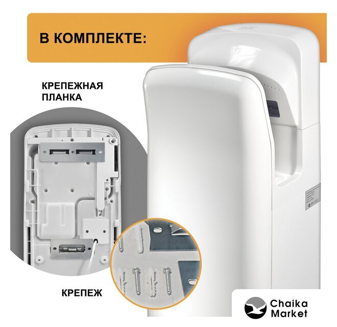 сушилка погружная, мощность: 1800 Вт, время сушки: 7 с