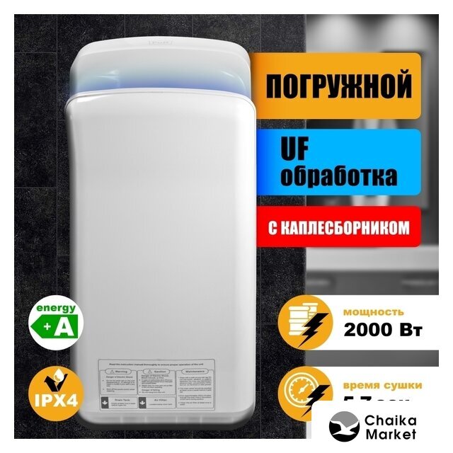 сушилка погружная, мощность: 2000 Вт, время сушки: 8 с