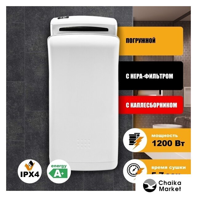 сушилка погружная, мощность: 1200 Вт, время сушки: 7 с