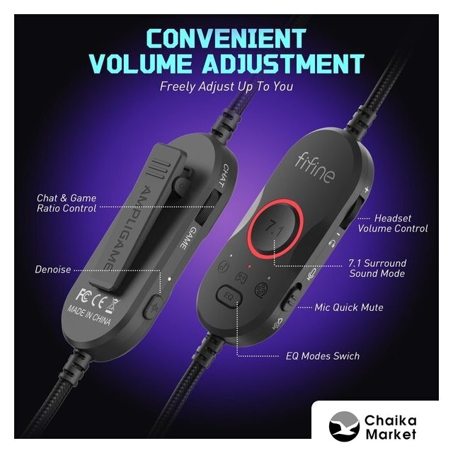 | Функции управления | активация объемного звучания, переключение пресетов эквалайзера, приглушение микрофона (mute), регулировка громкости чата |