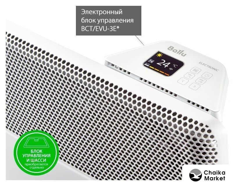 отопительный модуль конвектора, монолитный (x-образный), 2500 Вт, термостат, очистка воздуха, настенный монтаж, управление отдельным приобретаемым блоком управления, площадь обогрева 30 м2, влагозащищенный корпус