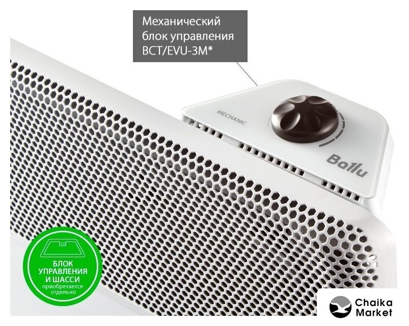 отопительный модуль конвектора, 2000 Вт, настенный монтаж, управление механическое, площадь обогрева 25 м2, влагозащищенный корпус
