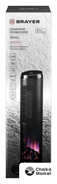 тепловентилятор, керамический, 2000 Вт, термостат, управление электронное, площадь обогрева 20 м2
