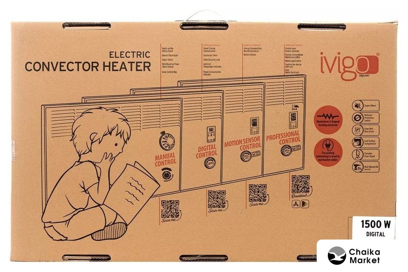 конвектор, монолитный (x-образный), 2000 Вт, термостат, управление электронное, площадь обогрева 20 м2