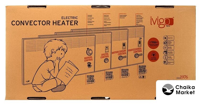 конвектор, монолитный (x-образный), 1500 Вт, термостат, настенный монтаж, управление электронное, площадь обогрева 15 м2