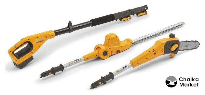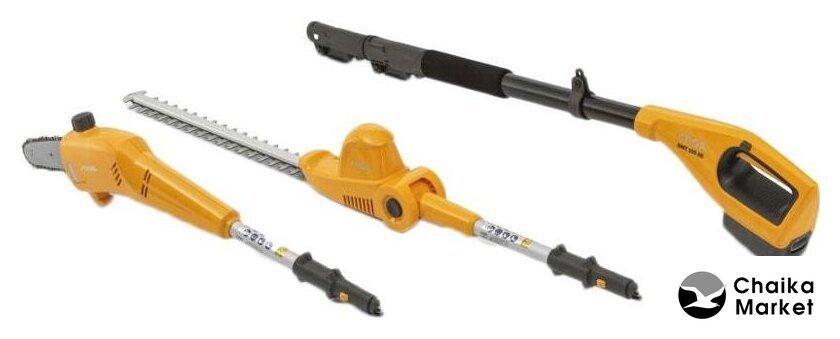 Комплектация | - высоторез с цепной пилой- ножницы для живой изгороди- вал- 1 аккумулятор- зарядное устройство |
