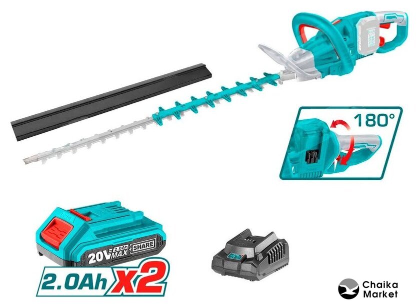 кусторез + высоторез, аккумуляторный двигатель, 21 В, без аккумулятора в комплекте, регулируемый угол наклона, 6.2 кг