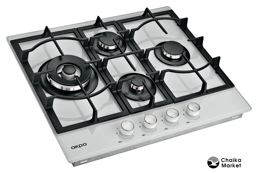 газовая на 5 конфорок, закаленное стекло, мощность: 10800 Вт, автоматический электроподжиг, газ-контроль, решетки: чугун, независимая установка, размеры (ШхГ): 70x52.5 см