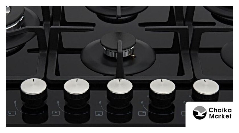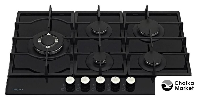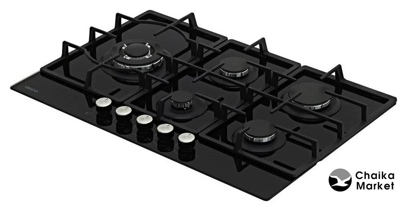 газовая на 4 конфорки, закаленное стекло, мощность: 7400 Вт, автоматический электроподжиг, газ-контроль, решетки: чугун