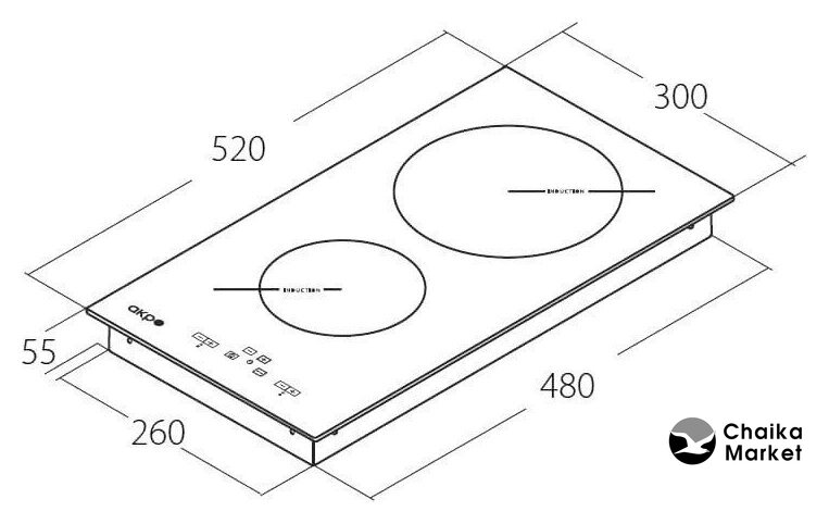 индукционная на 2 конфорки, cтеклокерамика, независимая установка, размеры (ШхГ): 30x52 см