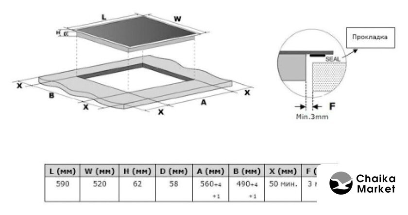 индукционная на 4 конфорки, cтеклокерамика, мощность: 8000 Вт, независимая установка, размеры (ШхГ): 59x52 см