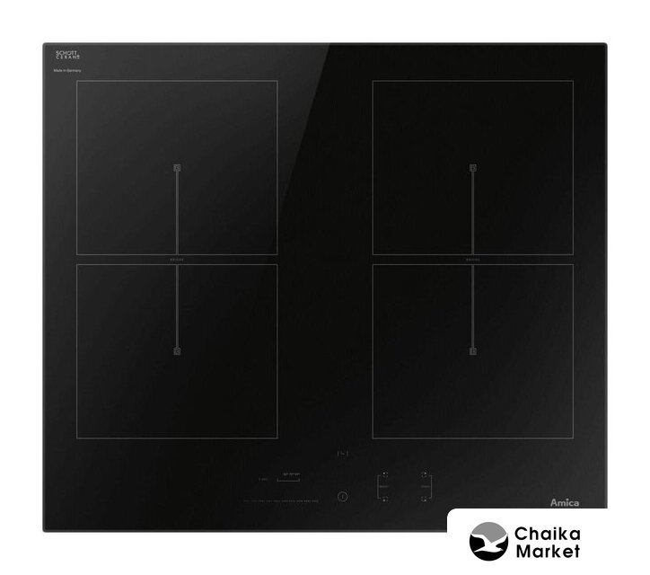 | Подробная информация о конфорках | 4 конфороки 210x190 мм объединяются в две свободные зоны нагрева 185x380,5 мм |