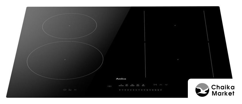 индукционная на 4 конфорки, закаленное стекло, мощность: 6000 Вт, независимая установка, размеры (ШхГ): 59x52 см