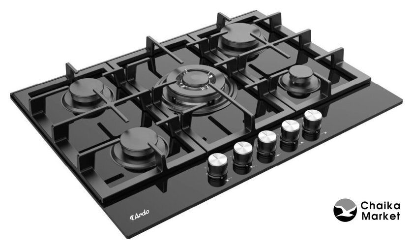 газовая на 5 конфорок, закаленное стекло, мощность: 10800 Вт, автоматический электроподжиг, газ-контроль, решетки: чугун, независимая установка, размеры (ШхГ): 86x52.5 см