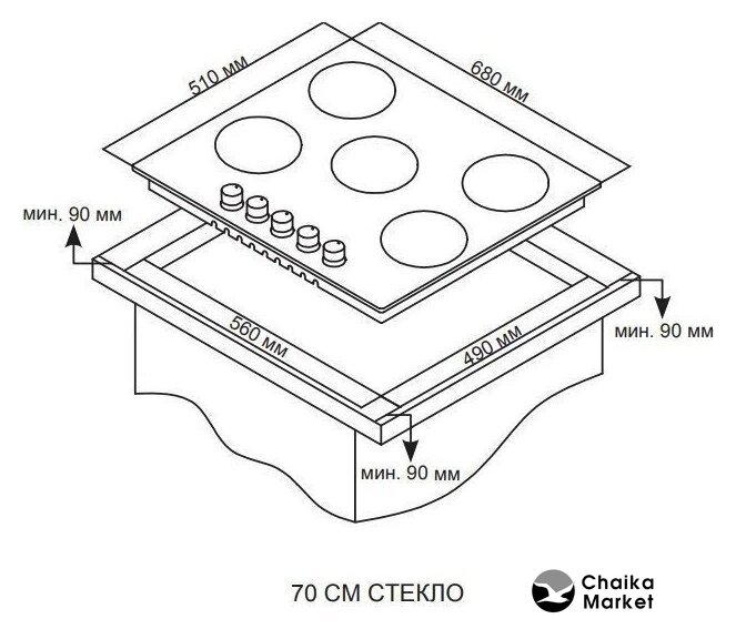 газовая на 4 конфорки, закаленное стекло, мощность: 8800 Вт, автоматический электроподжиг, газ-контроль, решетки: чугун, независимая установка