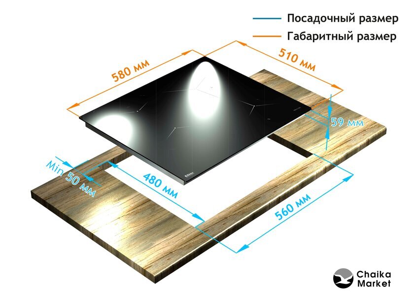 индукционная на 4 конфорки, cтеклокерамика, мощность: 7200 Вт, независимая установка, размеры (ШхГ): 59x52 см