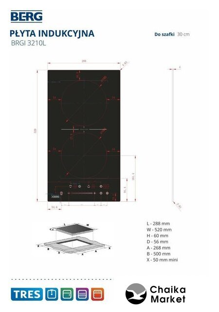 индукционная на 3 конфорки, cтеклокерамика, мощность: 7350 Вт, независимая установка, размеры (ШхГ): 59.2x52.2 см