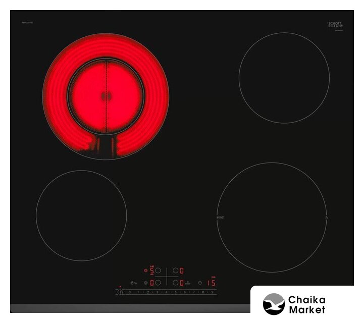 HiLight на 4 конфорки, cтеклокерамика, мощность: 7100 Вт, автоматика закипания, независимая установка, размеры (ШхГ): 57.6x51.6 см