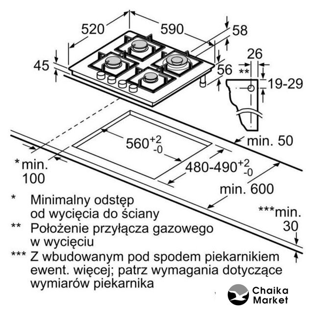 Размеры ниши для встраивания |