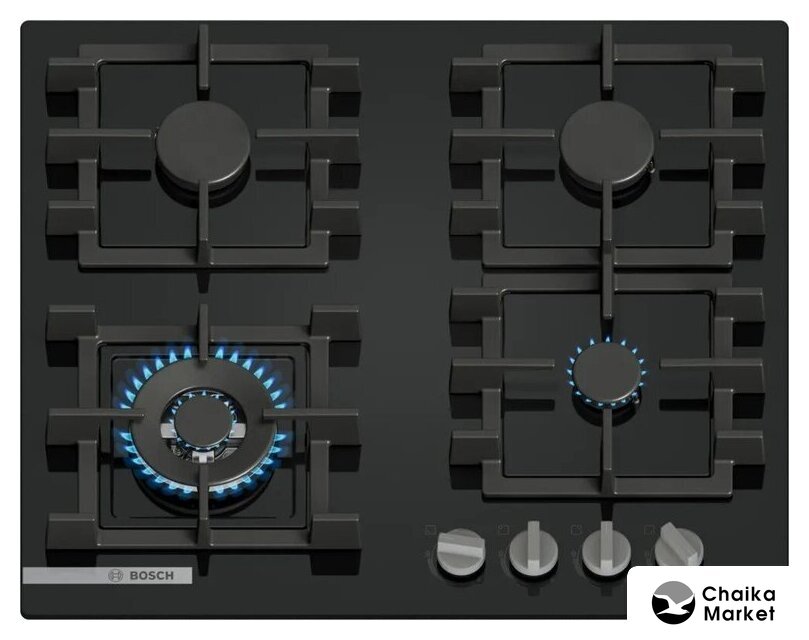 газовая на 4 конфорки, закаленное стекло, мощность: 8900 Вт, автоматический электроподжиг, газ-контроль, решетки: чугун, независимая установка, размеры (ШхГ): 59x52 см