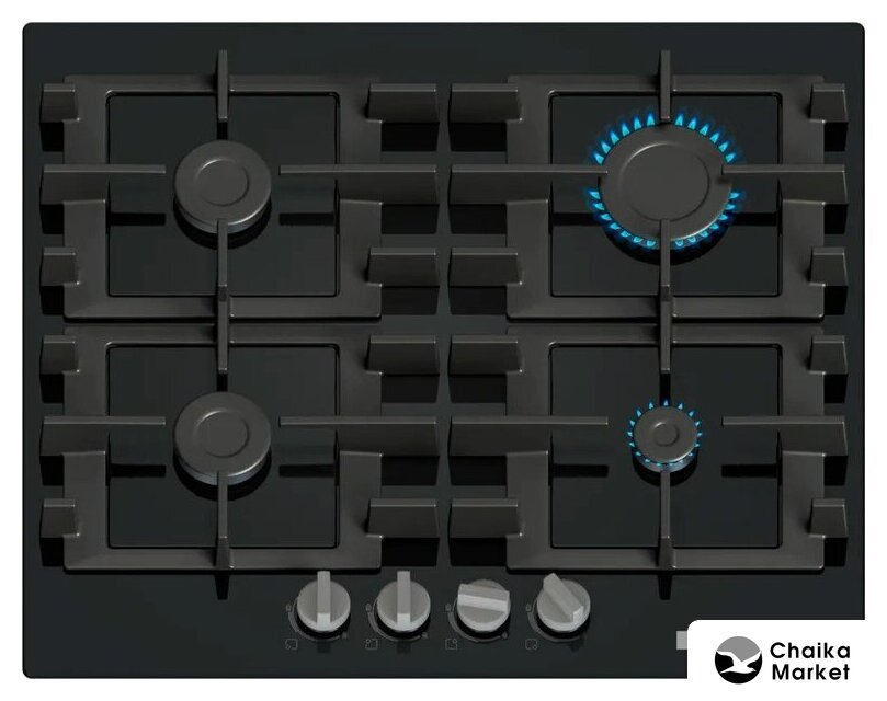 газовая на 4 конфорки, нержавеющая сталь, мощность: 8000 Вт, автоматический электроподжиг, газ-контроль, решетки: чугун, независимая установка, размеры (ШхГ): 59x51 см