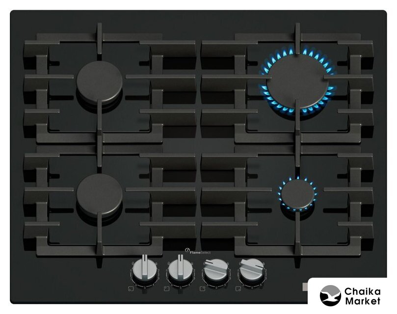 газовая на 4 конфорки, закаленное стекло, мощность: 7650 Вт, автоматический электроподжиг, газ-контроль, решетки: чугун, независимая установка, размеры (ШхГ): 60x52 см