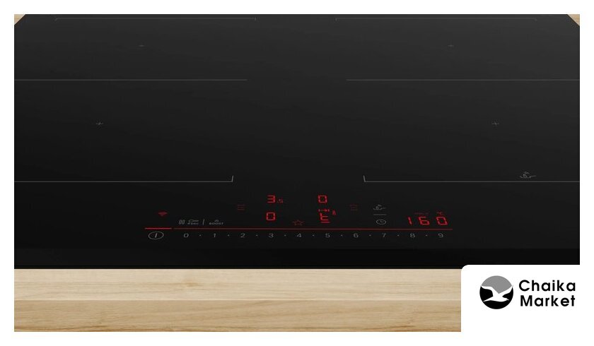 индукционная на 5 конфорок, cтеклокерамика, мощность: 9000 Вт, независимая установка, размеры (ШхГ): 90x52 см