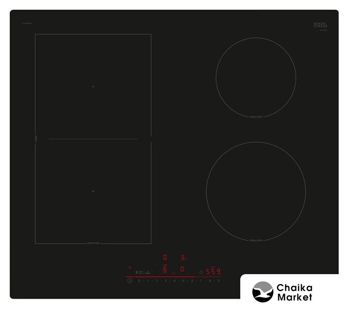 индукционная на 4 конфорки, cтеклокерамика, независимая установка, размеры (ШхГ): 59.5x52 см