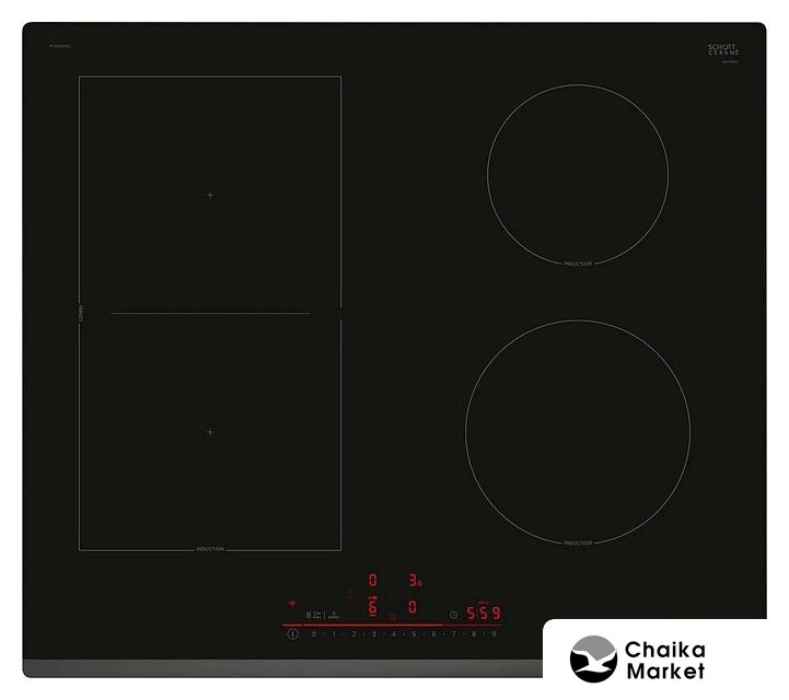 индукционная на 4 конфорки, cтеклокерамика, мощность: 7400 Вт, независимая установка, размеры (ШхГ): 59.2x52.2 см