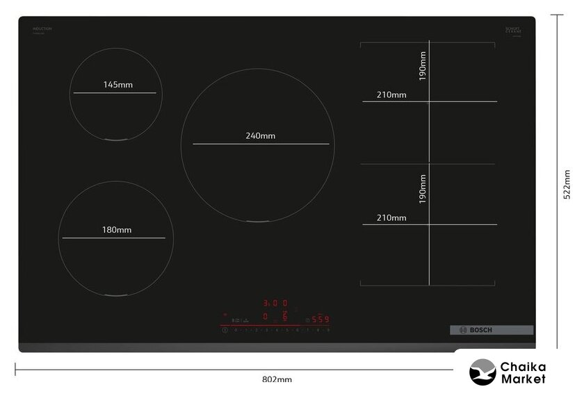 индукционная на 6 конфорок, cтеклокерамика, независимая установка, размеры (ШхГ): 59x52 см
