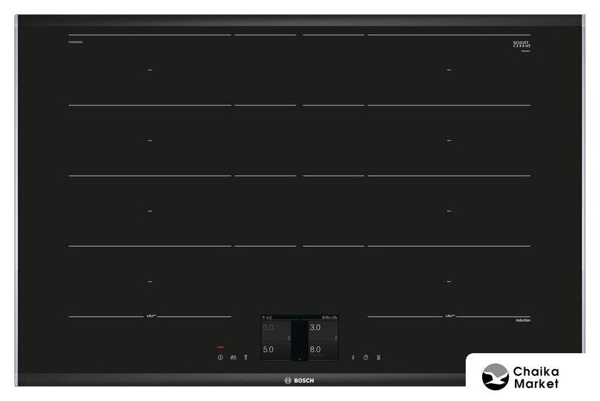 индукционная на 5 конфорок, cтеклокерамика, независимая установка, размеры (ШхГ): 90x52 см
