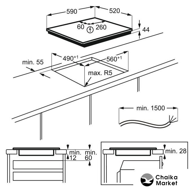 индукционная на 4 конфорки, cтеклокерамика, мощность: 7200 Вт, автоматика закипания, независимая установка, размеры (ШхГ): 59x51 см