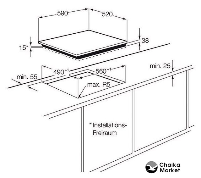 HiLight на 4 конфорки, cтеклокерамика, независимая установка, размеры (ШхГ): 58x51 см