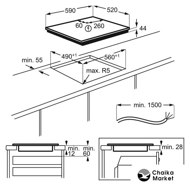 индукционная на 4 конфорки, cтеклокерамика, мощность: 7200 Вт, автоматика закипания, независимая установка, размеры (ШхГ): 59x52 см