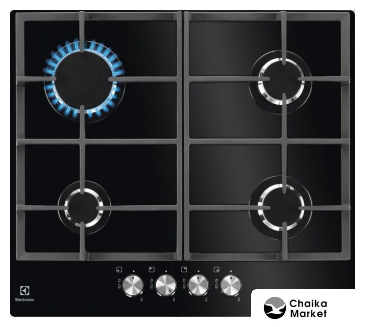 газовая на 4 конфорки, закаленное стекло, мощность: 7650 Вт, автоматический электроподжиг, газ-контроль, решетки: чугун, независимая установка, размеры (ШхГ): 60x52 см