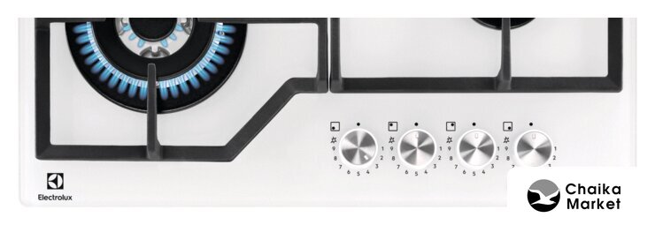 газовая на 4 конфорки, закаленное стекло, мощность: 7500 Вт, автоматический электроподжиг, газ-контроль, решетки: чугун, размеры (ШхГ): 59x52 см