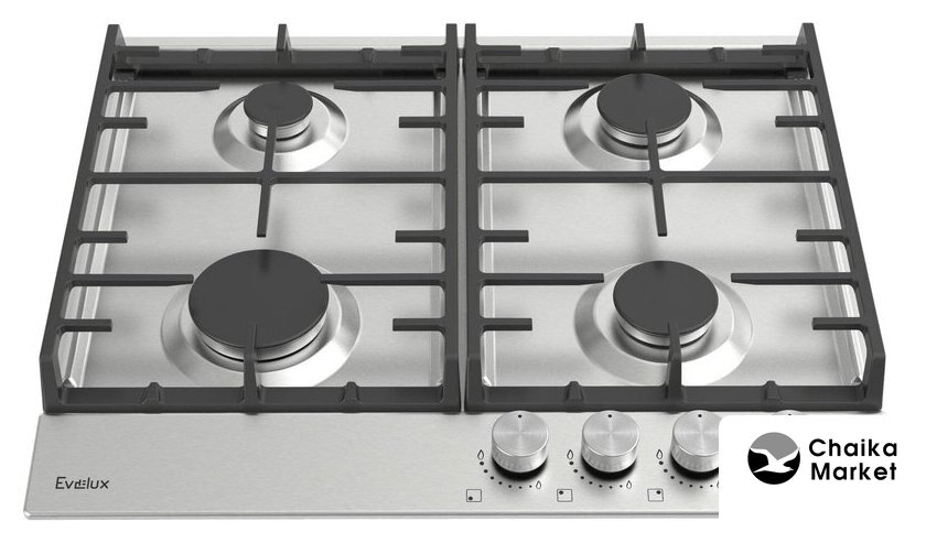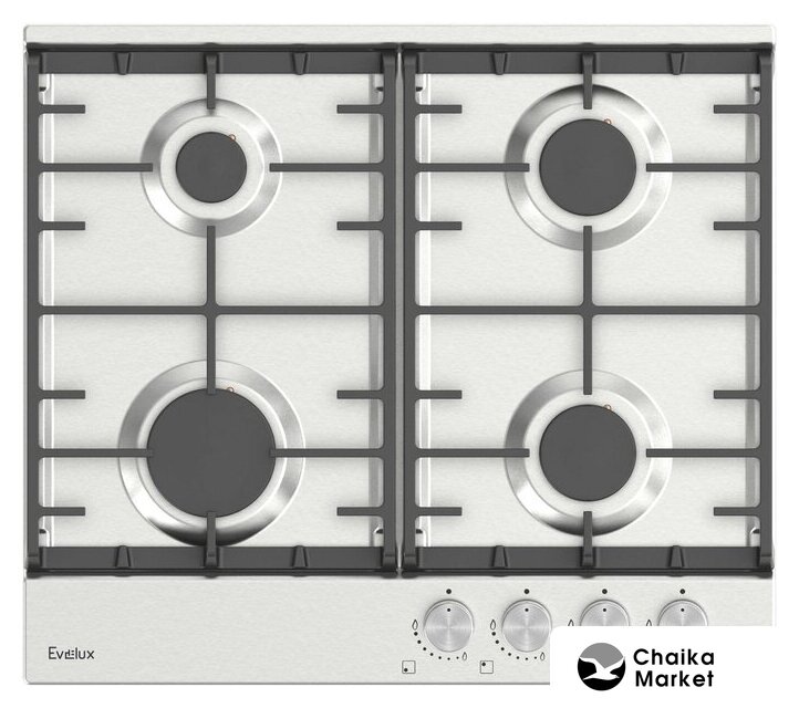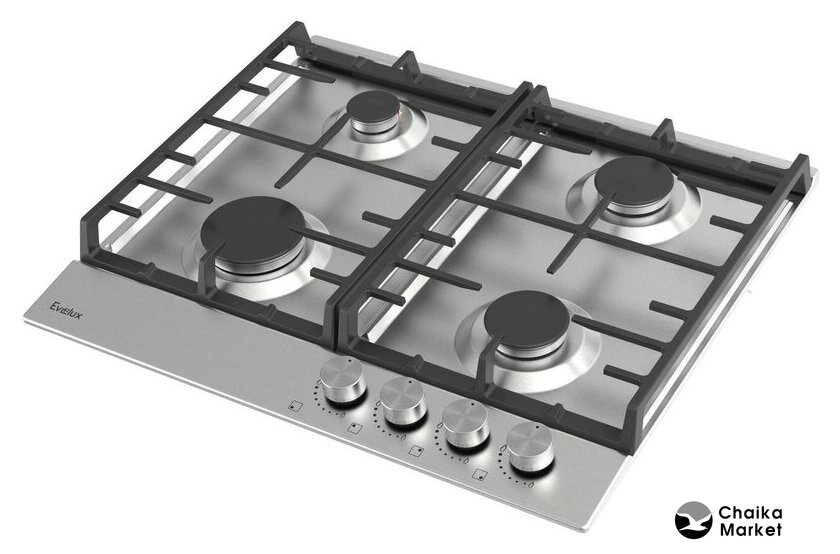 газовая на 4 конфорки, нержавеющая сталь, мощность: 7300 Вт, автоматический электроподжиг, газ-контроль, решетки: чугун, независимая установка, размеры (ШхГ): 60x52 см