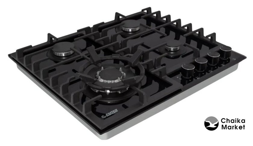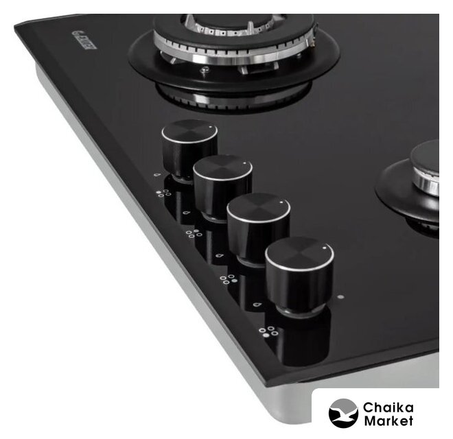 газовая на 4 конфорки, закаленное стекло, мощность: 8800 Вт, автоматический электроподжиг, газ-контроль, решетки: чугун, независимая установка