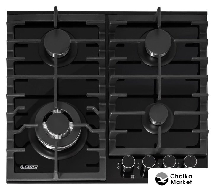 газовая на 4 конфорки, закаленное стекло, мощность: 8800 Вт, автоматический электроподжиг, газ-контроль, решетки: чугун, независимая установка, размеры (ШхГ): 58x50 см