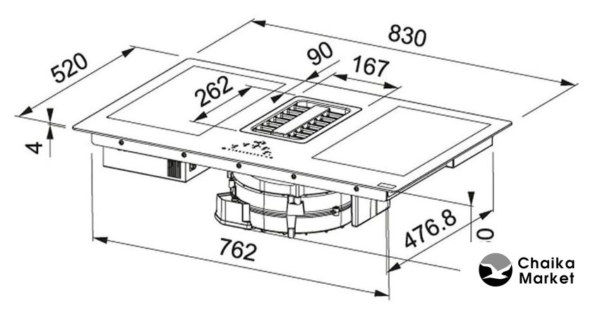 индукционная на 4 конфорки, cтеклокерамика, мощность: 7620 Вт, независимая установка, размеры (ШхГ): 83x52 см