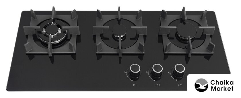 газовая на 3 конфорки, закаленное стекло, мощность: 5950 Вт, автоматический электроподжиг, газ-контроль, решетки: чугун, независимая установка, размеры (ШхГ): 45x52.5 см