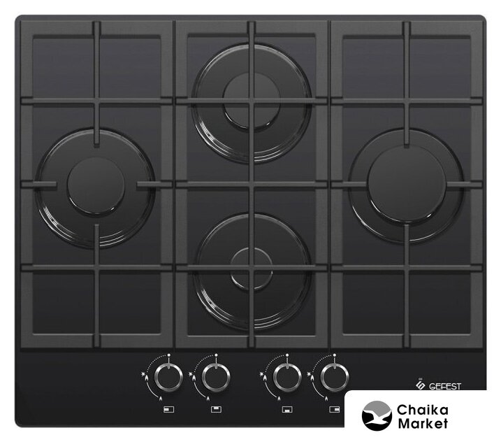 газовая на 4 конфорки, закаленное стекло, мощность: 6800 Вт, автоматический электроподжиг, газ-контроль, решетки: чугун, независимая установка, размеры (ШхГ): 61x51 см