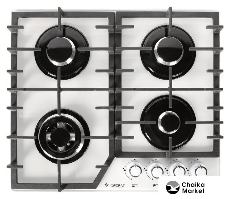 газовая на 4 конфорки, закаленное стекло, автоматический электроподжиг, газ-контроль, решетки: чугун, независимая установка, размеры (ШхГ): 63.5x52 см