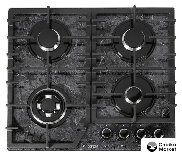 газовая на 4 конфорки, закаленное стекло, мощность: 7000 Вт, автоматический электроподжиг, газ-контроль, решетки: чугун, независимая установка